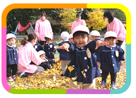 春は田んぼでオタマジャクシ探し。梅雨は色鮮やかなアジサイ、夏はひまわり畑、秋はコスモス通りを歩き、どんぐり拾い・・・そして冬は落ち葉遊び!