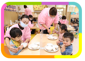 子どもたち一人ひとりにしっかりと目が行き届くように、国で定められた基準よりも沢山の先生が教育保育活動を行っています。 保育の現場はまさに想定外の連続。だからどんなことが起きても、慌てず焦らず、あんしん・あんぜんを第一に確保できる体制を整えています。