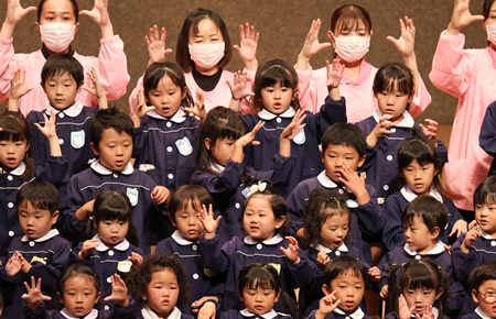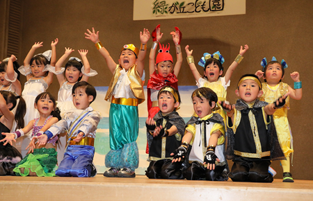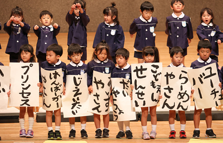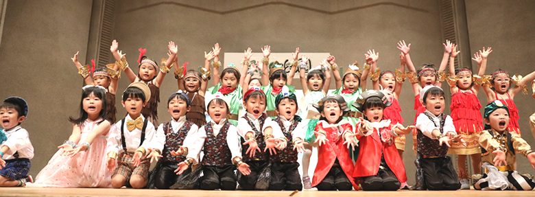 0歳の乳児から年長組までの全園児が参加する華やかな発表会です。
