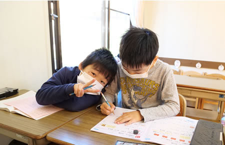 おやつを食べたら、みんなで宿題に取り組みます。