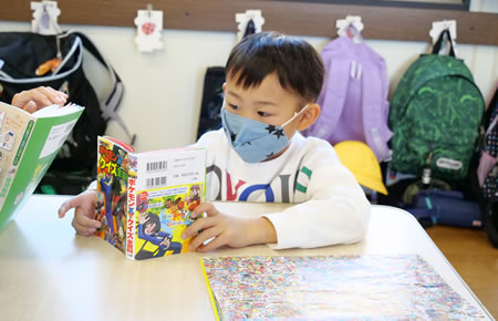 児童クラブには、様々な種類のたくさんの本があるよ‼
