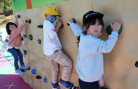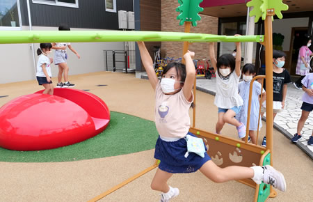 こども園の園庭には、小学生も楽しめる遊具がたくさんあります。