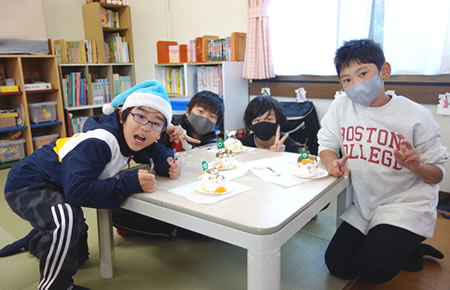 クリスマス会ではケーキを作り、マジックや特技を披露して楽しみました。