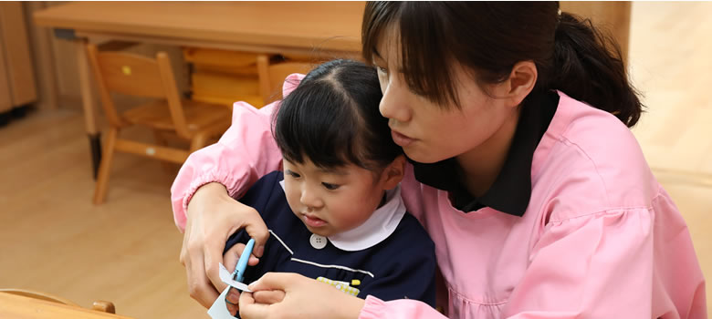 「笑顔」は子どもに安心感を与えます。園に子どもを預ける親御さん、共に働く仲間たちからの信頼を得るはじめの一歩でもあります。